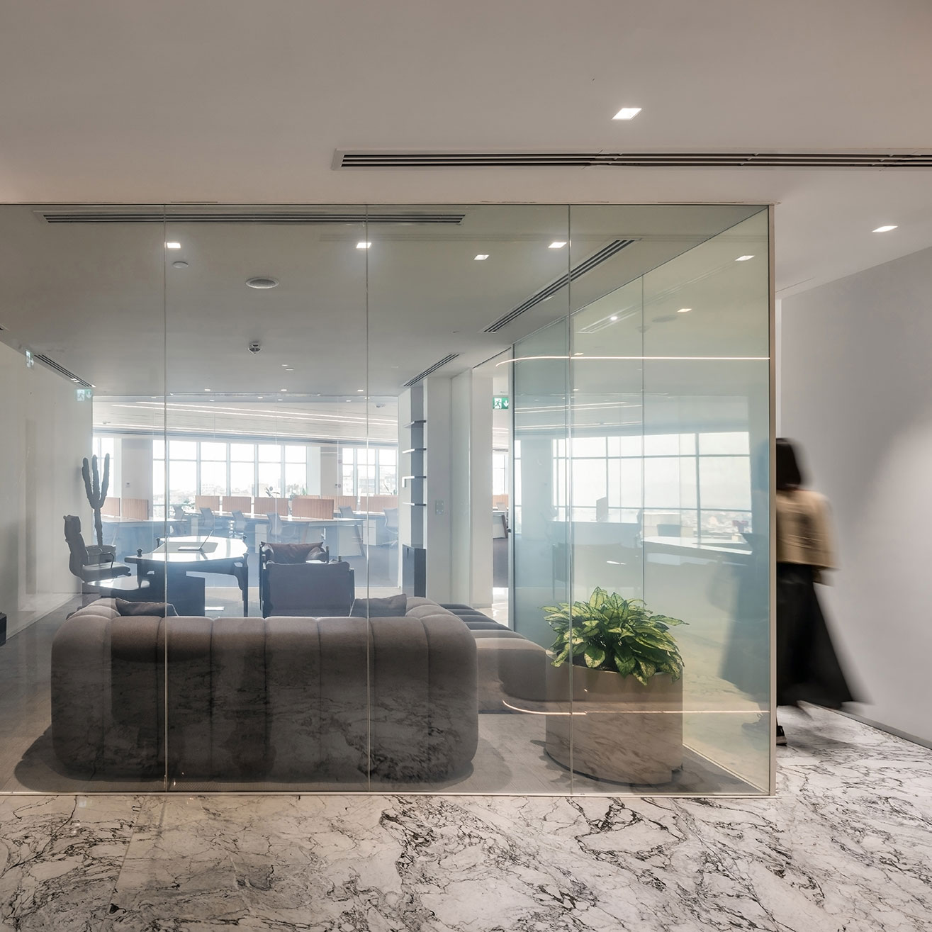 دیوارهای شفاف ریبون انعکاس همیشگی نور و زیبایی آسمان را در خودشان دارند. اما در عین حال شفافیت را نه فقط در معماری، که در محیط کار و روابط تجاری نیز ترویج میکنند.